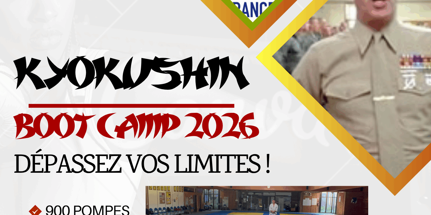 Nov72025CampEvènements Kyokushin Boot Camp 2026! Dépassez vos limites! Décrassage express! 900 pompes! 900 Abdos! 900 Squats ! Samedi 3 janvier 2026 de 14h30 à 18h00 au Dojo de Bondues Tous à vos agendas! Catégories : Camp, Evènements7 novembre 2025Laisser un commentaireNavigation articlePrécédent Article précédent :Stage 30 combats Multistyles 2025SuivantArticle suivant :Kyokushin Training – Préparation à la compétition CombatRelated postsKyokushin Training – Préparation à la compétition Combat7 novembre 2025Stage 30 combats Multistyles 202525 octobre 2025TROPHEE KATA LEO LAGRANGE 202520 octobre 2025ATELIER STRETCHING24 août 2025CARDIO-BOXING19 août 2025Camp national KWF FRANCE 202531 mai 2025